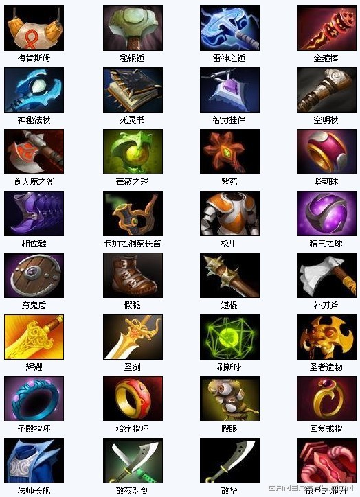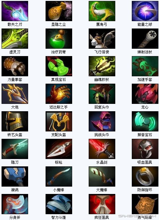 还有,《Dota2》中的物品是否让你眼花缭乱了呢?小编从国外网站将这些物品图片全部下载,根据英文名将所有物品进行了一番翻译,也有几个实在翻译不了的也将原名标注了,希望有玩家能提供资料。