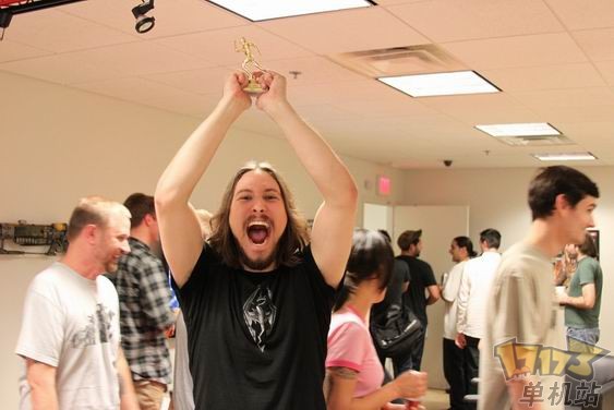这次参加比赛的两位选手分别是《上古卷轴5:天际》的质监测试员萨姆·伯恩斯坦,以及开发组的杰夫·布莱恩,这两位竞争者曾在《辐射3》里拼过一把闪电通关,当时伯恩斯坦领先数秒以大约75分钟的成绩胜出。这次谁会胜出?杰夫·布莱恩用了2小时16分钟30秒打通《上古卷轴5:天际》,而萨姆·伯恩斯坦则用了2小时16分钟10秒通关,质监组大胜!