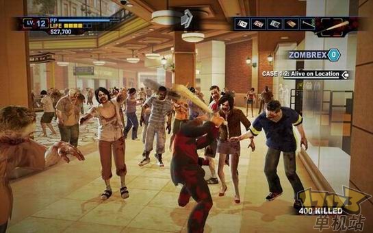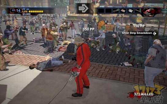 记者Frank West又回来了!可以不用看着Chuck那苦大仇深摆满杯具的脸了。Frank的归来注定了本作将是一个欢乐的打丧尸游戏。整个游戏除了主角,其他东西看起来都没什么变化,只不过游玩的时候心情轻松了许多,同屏的丧尸增多了,还加入了自由模式,游戏变得更爽快了。