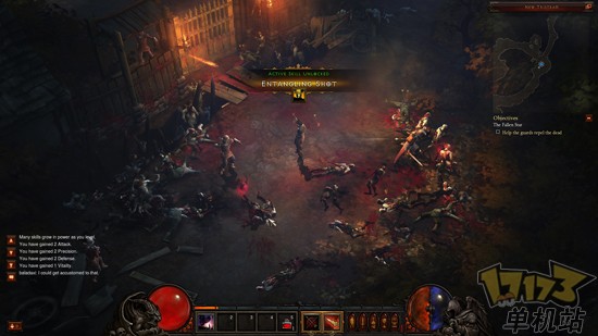 是因为前10级的技能太弱还是?除了最后的BOSS 骷髅王我用了技能清理那无限召唤的小怪以外,都是一路平攻到最后,从来都不用。不知道如何去像2代一样设置快捷键,技能的效果似乎也对游戏的进程没多大影响(以后也许有)。而且技能树被取消了,玩家拥有的只是到等级就自然出现的技能,
