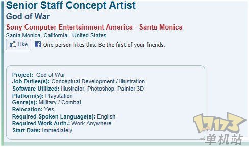 从下图中我们可以看到,圣莫妮卡工作室正在为一个《战神》项目招募高级原画设计师。应聘者应当具有丰富的游戏开发经验(如PS2、PS3、Xbox和Xbox360),这也表明这部新款《战神》作品预计仍将是PS3作品,并不会登陆PS Vita。