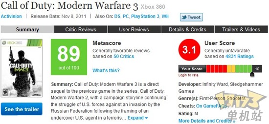 不过,目前而言《使命召唤8》在该网站的玩家评分仍旧不容乐观。截至小编发稿时三大平台的评分如下: