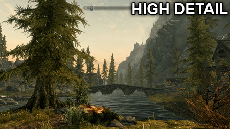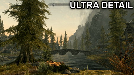 此外,《Skyrim》的设置最高级别与最低级别差距并不像其他游戏那么大,由以下对比图就能看出: