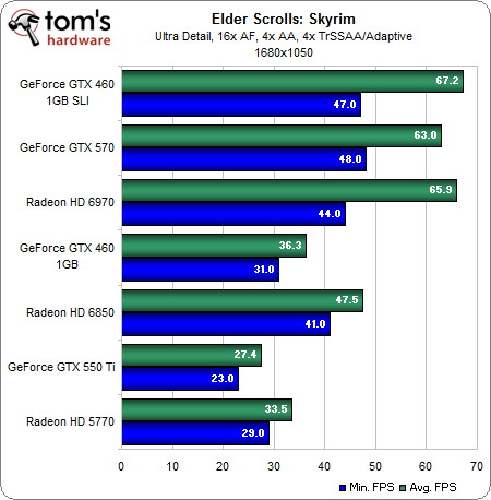 好了,除此以外的分析不再赘述,下面让我们一起来看看各种级别设置下什么样的显卡能流畅运行《Skyrim》: