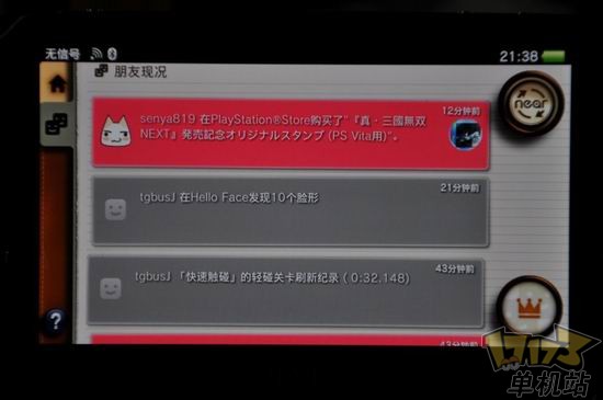 下面要说的就是几项比较有意思的功能了,这也是小编测试了整个near功能中感觉最出彩的地方,首先要说的就是“朋友现况”。你在PSN中加入的好友,可以根据对方愿意公开的活动的详细程度,在这里及时显示出好友的动态。而针对每一条活动,都可以自由的书写留言,抒发感想。
