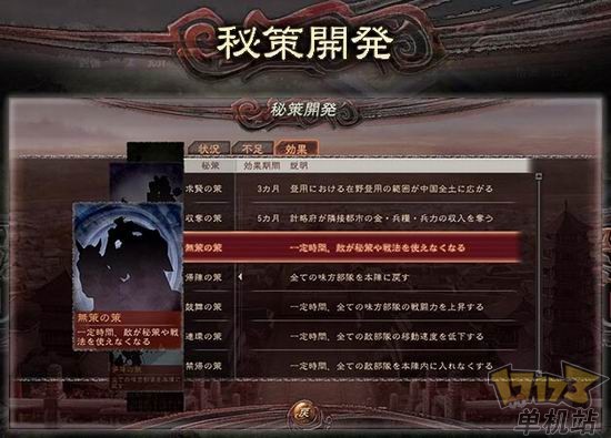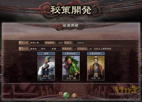 开发就需要人才。比如说有“军师”特技的武将就可以开发“无策之策”。