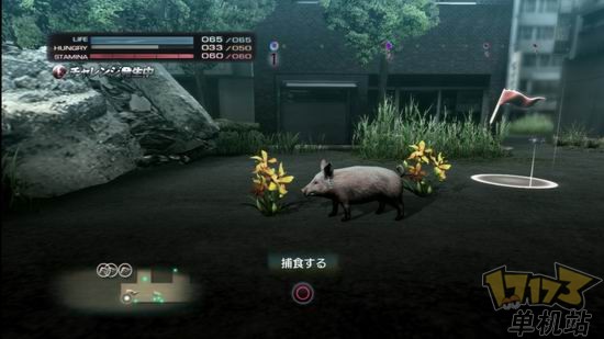其中在捕食方面,这是最基本的填饱肚子的要素,当玩家们展开行动的时候,画面左上方的饥饿量表(HUNGRYゲージ)就会开始减少,如果是肉食动物,就要来狩猎地图上其他动物来吃肉;如果是草食动物,则是要来寻找关卡上的杂草或是树木果实来填饱肚子回复量表。一旦这个飢饿量表变成零的话,代表动物生命力的生命量表(LIFEゲージ)也会开始不断减少。