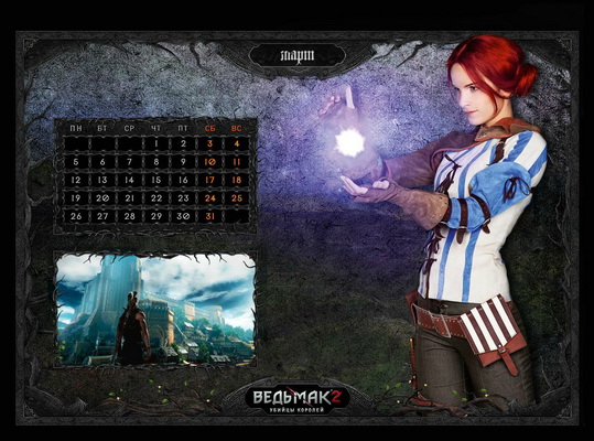 波兰《花花公子》杂志打算采用《巫师2》中的虚拟女主角Triss来主打五月份的封面图,但它的风光很快将被俄罗斯的**日历图掩盖。《巫师2》的俄罗斯出版商最近在网络上公开了部分尺度非常大的日历图。在下面的日历图中,女主角由乌克兰人模特KlodiMonsoon扮演游戏女主角Tri