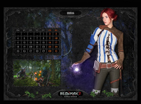 波兰《花花公子》杂志打算采用《巫师2》中的虚拟女主角Triss来主打五月份的封面图,但它的风光很快将被俄罗斯的**日历图掩盖。《巫师2》的俄罗斯出版商最近在网络上公开了部分尺度非常大的日历图。在下面的日历图中,女主角由乌克兰人模特KlodiMonsoon扮演游戏女主角Tri