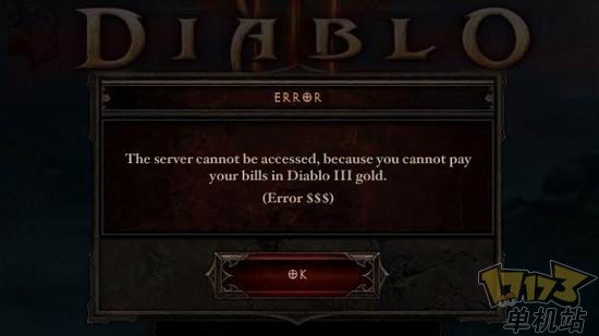 无法访问服务器,因为你无法用暗黑金币付清账单。