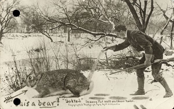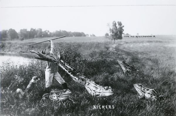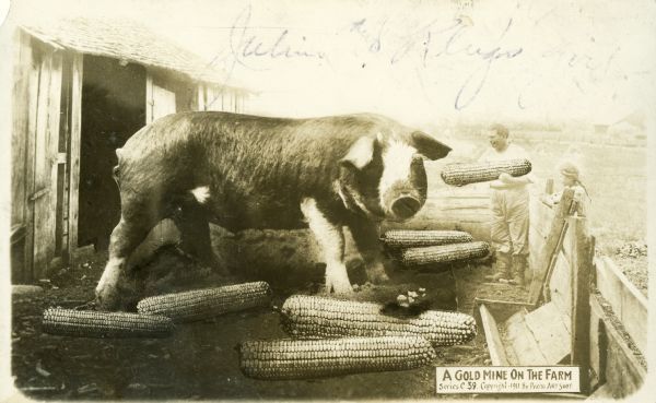 在第一次世界大战的时候,"高且酷"明信片公司就利用自家的明信片对全美的小型农会产品进行展示宣传。明信片上就利用当时最先进地裁剪和模糊处理技 术让小人儿骑在大洋葱上啊,藏在路蛤中,或者和巨型兔子,松鼠嬉戏。如果巨蟒与圣杯中的Terry Gilliam饿的要死的话,那么这些巨型动物绝对他的最爱。威斯康辛州的社会历史学家对这些照片介绍道: