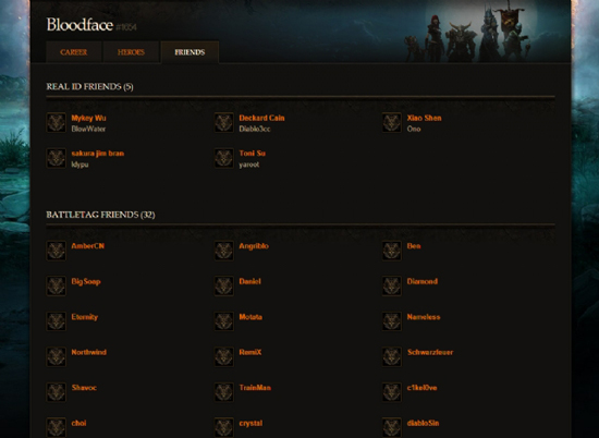 3、分享给你的好友。Friends Tab(好友)可以让你看到你的好友角色,并可以迅速和他们进行装备,技能,符文选择和几乎所有方面的对比。你也可以在《暗黑3》网站上直接点击战网昵称访问该玩家的英雄榜档案。