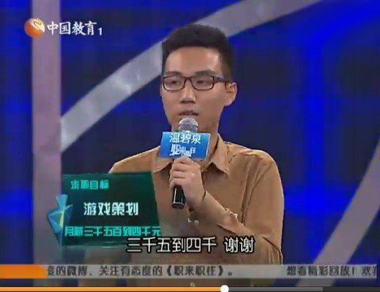 8月4日的《职来职往》节目中,一位叫张航的游戏玩家参与了求职。他希望从事的是游戏策划工作,无奈最终失败。张航今年23岁,毕业于西南民族大学,求职目标是游戏执行策划,期望薪资3500到4000。张航接触游戏20多款,玩的最久的是《魔兽世界》。在专业技能考试环节,巨人网络研发子公司巨