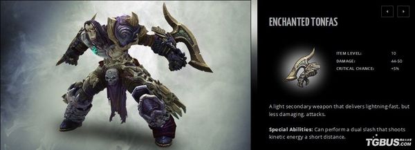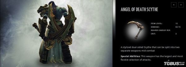 装备等级:15伤害:120-136生命偷取:9%愤怒偷取:9%愤怒:34二、武器武器分为三个大类,即镰刀,近身武器和重武器1、镰刀简介:能够在战斗中分成两部分的镰刀,很有个性。镰刀拥有最出色的柔韧性和攻击灵活性。死亡天使镰刀