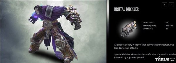 装备等级:10伤害:51-57闪电伤害:12特殊能力:能够使用防御姿态防守并接续地面猛击来反击。残忍臂刃