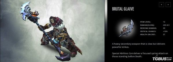装备等级:15伤害:293-321穿刺伤害:39暴击几率:+18%暴击回复生命:37特殊能力:使用突刺攻击面前的敌人火焰残忍巨斧