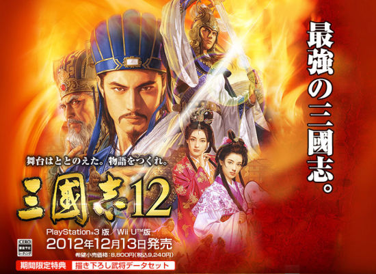 TECMO KOEI Games此前公布了PS3及WiiU版《三国志12》将在12月13日发售的消息,价格为9240日元(含税)。另外PS3版先前报道过的豪华特典同梱版“三国志 12 PREMIUM BOX”也会同时发售,价格为1万1340日元(含税)。