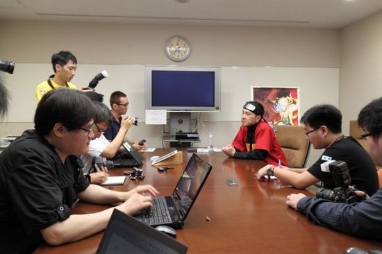 而NBGI也邀请到了制作《火影忍者疾风传:究极风暴3》的合作开发商CyberConnect 2社长松山洋,以一身“漩涡鸣人仙人模式”的COSPLAY装扮热血登场来介绍本作要素。