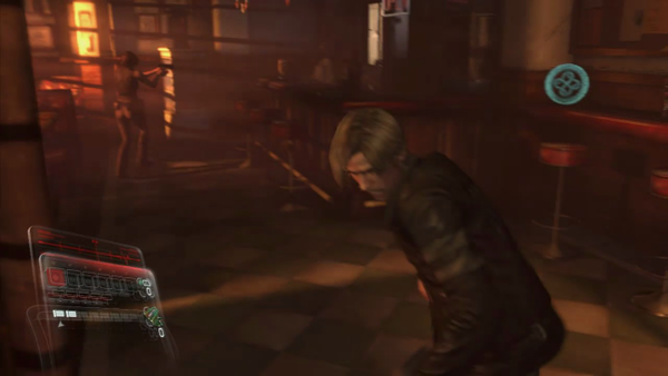 位置:在里昂操纵直升飞机坠机,躲开霓虹招牌后,大厅门边前台后的柜子上。