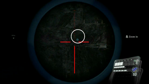 位置:在有水的场景,你必须连续趴伏通过两座矮桥,通过最后一个后左侧的栅栏内