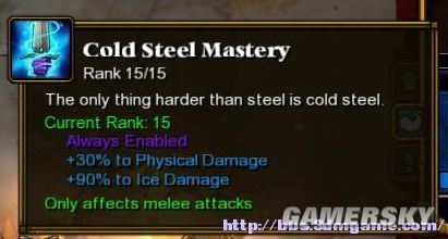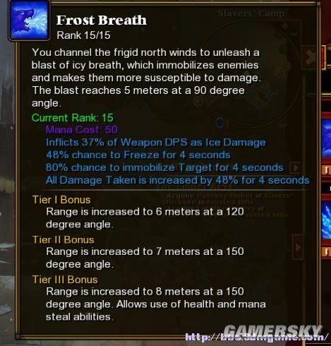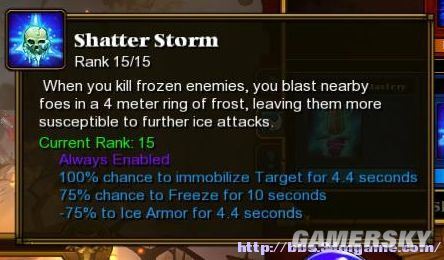 当你击杀被冰冻的敌人时,你会射出范围4米圆的冷气,被冷气击中的敌人更进一步的受到冰属的伤害。