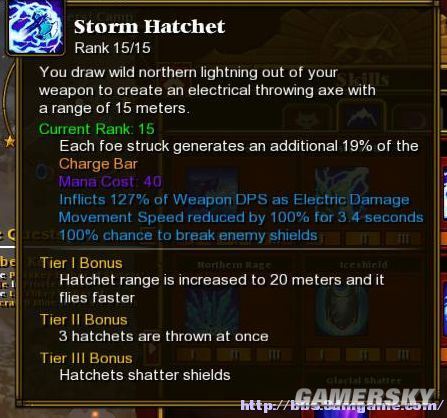 从你的武器裡射出一个能飞行15米,由北方荒野裡的闪电所形成的飞斧