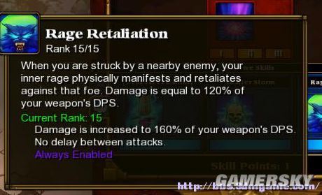 当你被附近的敌人击中时,你内心深处的愤怒将会涌出,并报复回去。你击出武器DPS120%的伤害。