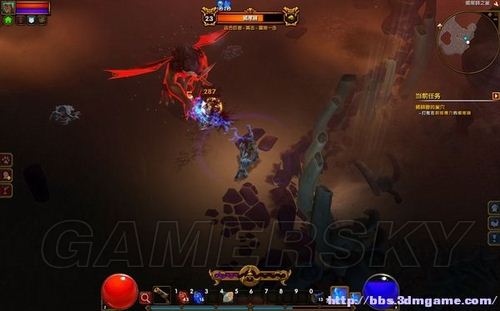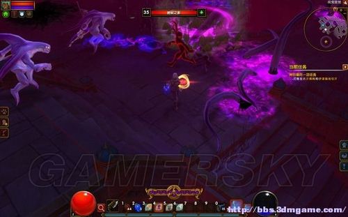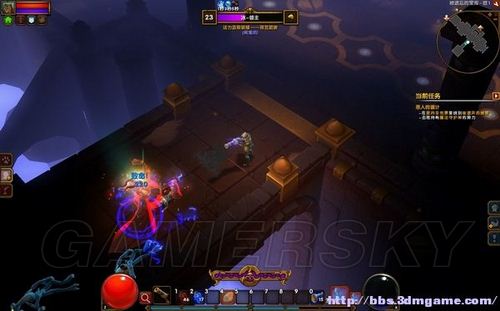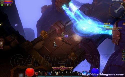二层的敌人比较密集,喷射蓝色光焰的石像可以阻断敌人的追击。换上抗电属性高的装备,多带些药水,接下来是一场艰苦漫长的战斗。