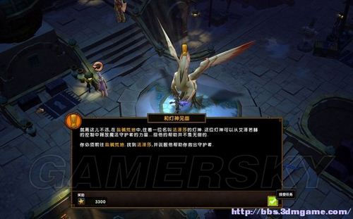 在荒地里找到灯神法泽莎,得知创造者曾向伊泽瑞克可汗学习邪恶仪式,灯神可以解除守护神身上的束缚,现在主角得做三件事来娱乐灯神。