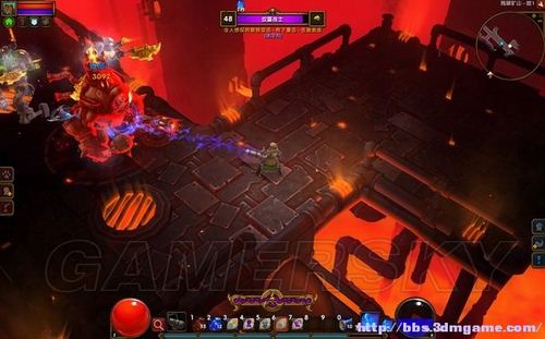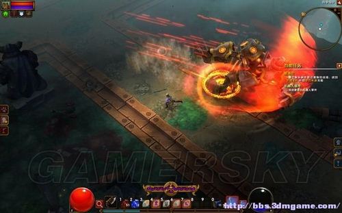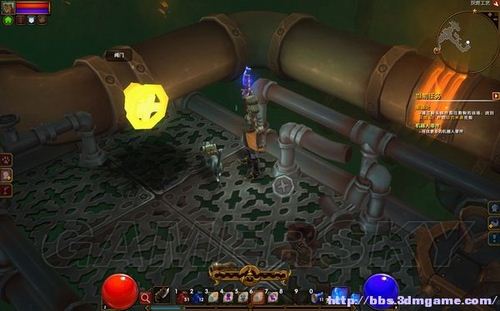 接下来要搜寻时钟核心,来到矿山的五层,这里以暗系怪物为主,辅以机械炮塔。一路杀到八层的时钟核心,遭遇地狱领主,第一回合主要用近身和冰息攻击,他行走缓慢,边跑边打并不艰难。第二回合会变身,手持一把阔剑,并会召唤一些喽啰帮忙,攻击方式也变得更多样化,攻击的伤害有所提升。游走身周来打,将他击倒取得时钟核心。