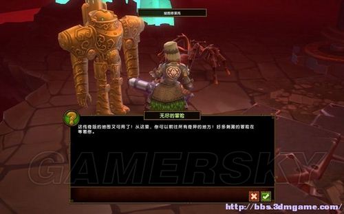 打倒了泰坦,后方的栅门解锁,进到后面的屋子里开宝箱,从桌上拾取能量源。回到皇家营地找司杜科教授谈话,将能量源置入机器人并成功启动,开启了伟大之门。