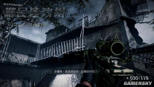 第五关:情势逆转夜战关,没有夜视仪,要考眼力了。一开始直接按F偷袭弄死个敌人。随后跟老妈进入小木屋,打爆放哨的敌人的头。离开木屋后在杀掉另外一个。随后跟随老妈,按Z趴下,从房子下面爬出去,中途会遇到个敌人,老妈会干掉。离开房子下面后将前方铁皮屋里面巡逻的敌人干掉。随后继续前进,遇