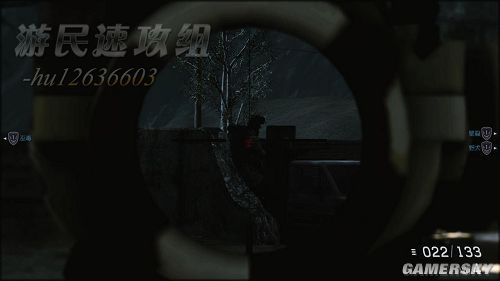 第十三关:结束一切 最后一关了,一开始还是一段动画,大胡子出现。降落至敌军地点之后就同队友们前进,遇到巡逻小队,等待车辆走后留下两人,一人在**一人看他**,随便击杀一个,队友会干掉另外一个。 继续前进,遇见一群人烤火,等待走掉后留下三个继续烤,随便干掉一个,队友干掉其余的两个
