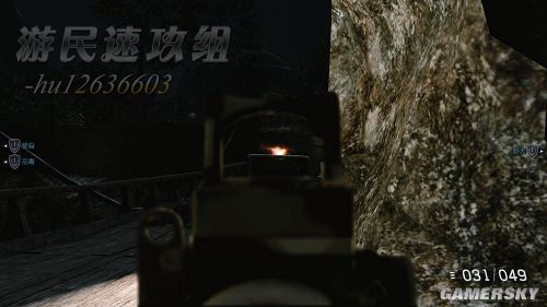 来到桥段,装甲车挡住了去路,射击机枪挡板的洞口,杀死机枪手。