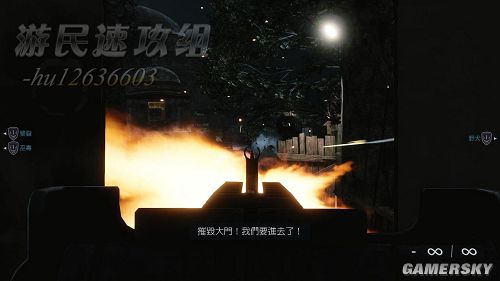 理到差不多后队友会把二楼的门给踹开,之后来到花园,一颗信号弹照亮了天空,另一大波敌人来袭。
