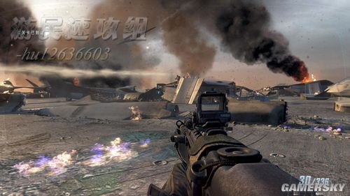 然后来到甲板上方的走廊上,使用旁边的狙击枪,见甲板上的敌人杀光。