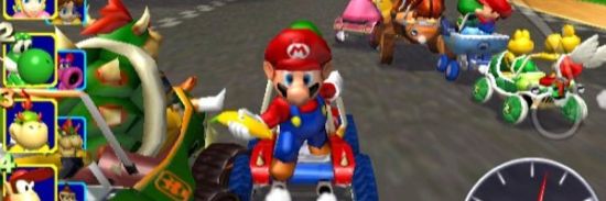 在《马里奥赛车》中保持领先简直是个噩梦,时刻提防着被蓝龟壳炸到,每次转弯都必须用上漂移,但这些都不如投错道具糟糕。一般情况下,每次你需要投出一个绿龟壳或是香蕉皮。绿龟壳可以向前或是向后投,是个很有用的道具。香蕉皮呢?差得远了。如果向后扔,它会稳定地分散后续车辆的注意力,抓在手里,勉强充作劣质的盾牌,而如果往前扔,唯一的结局就是让你自己人仰车翻。