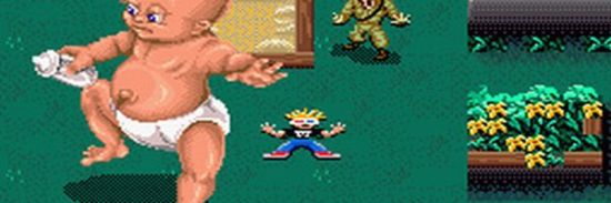 《忍者神龟》的主创在着手设计前几乎没动脑子想想,为什么这群乌龟只能单打独斗?一个有趣的电子游戏怎么会让玩家游过那么个水藻丛?最关键的是,为什么武器性能如此不平衡,拉斐尔匕首的攻击范围及攻击力和一辆T-Rex的摇臂相差无几——只能攻击1英寸范围内的敌人,而多纳泰罗的武士棒能砸死远在房间另一头的任何怪物。只有在这款游戏的设定里,一根台球杆居然会比能用来捅人的刀子更有杀伤力。