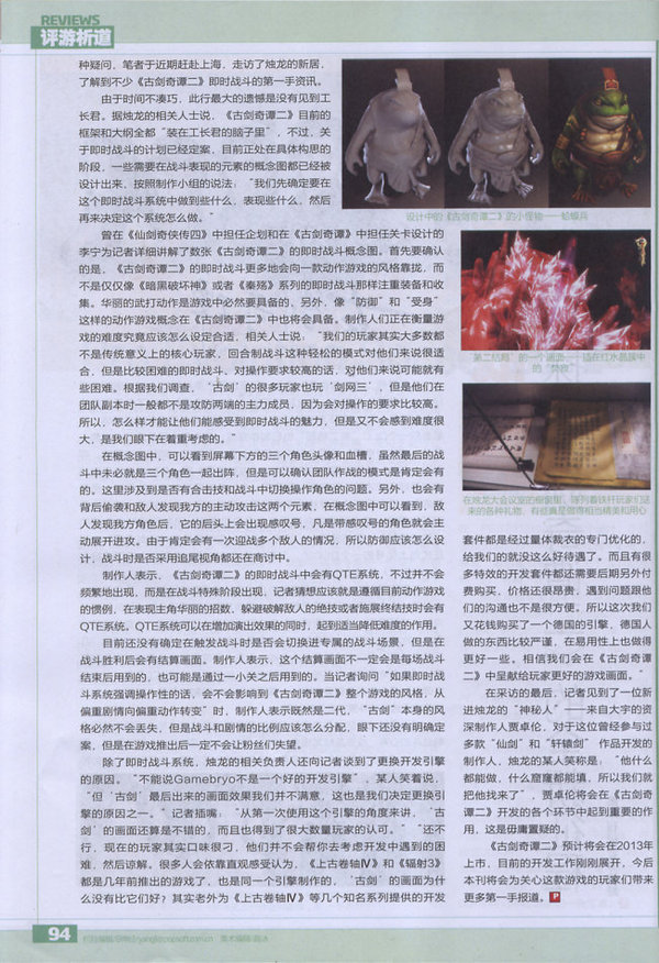 《古剑奇谭二》预计将会在2013年上市,目前的开发工作刚刚展开,今后本刊将会为关心这款游戏的玩家们带来更多第一手报导。