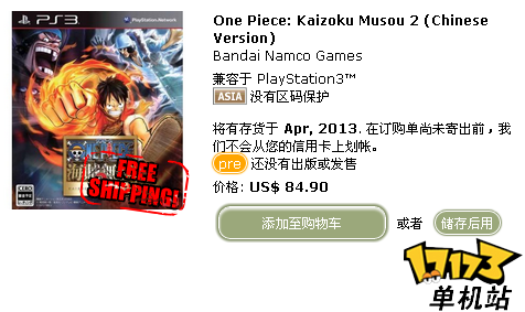 Play-Asia近日已将PS3《海贼无双2》繁体中文版上架预售,据销售商消息称,《海贼无双2》繁体中文版将登陆PS3平台,游戏为日语语音中文字幕,将于2013年4月发售,售价84.9美元(约529元人民币)。 《海贼无双2》为NAMCOBANDAIGames与TECMO