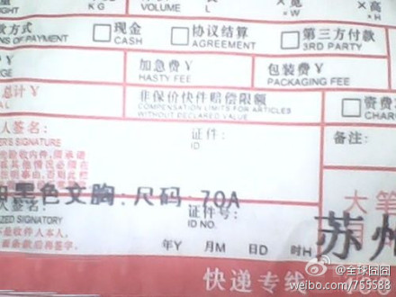 【13】卖家你说你把文胸写在快递单上就算了,LZ知道自己胸不大,为什么你还要把码数都写上!快递大叔给我签收的时候,我完全不敢抬头好么?我要投诉卖家啊,坑妹纸的卖家啊!不说了,全是满满的泪…