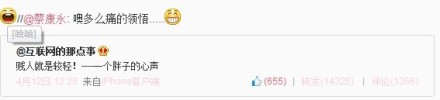 【16】有网友发微博:贱人就是较轻!—-一个胖子的心声。作为最右的蔡康永毫无违和感的接道:噢,多么痛的领悟~~!
