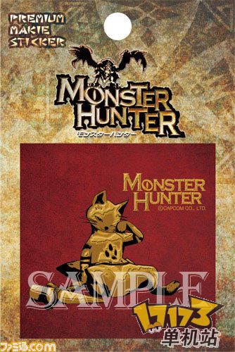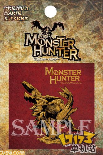 Capcom游戏《怪物猎人》系列相关周边登场。该周边将于2013年4月发售。怪物猎人金色贴纸 可以贴在手机、游戏机上的金色贴纸第二弹,全套3种。怪物猎人卡包 可放IC卡的卡包,全套2种。怪物猎人消息提醒看板 总共付有3种消息卡片,看板全套3种。电子X****烤肉