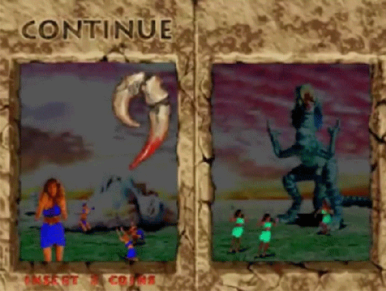 或许是吸引大家赶快投钱吧,以前这种GAME OVER倒数画面都会以黑底打上大大的数字开始倒数,旁边就会加入情况很紧急的动画,每次都急得四处跟旁边的人借钱***D