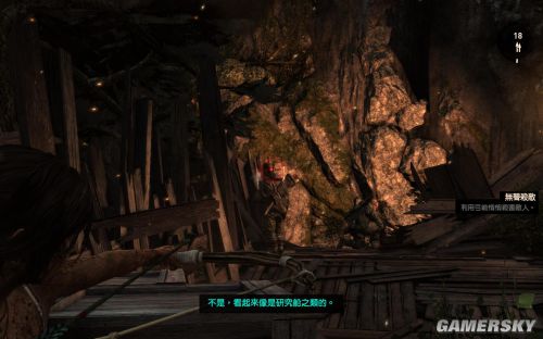 出来以后跳过断桥,前行一会之后可以拿到弓箭,尝试用弓箭悄悄暗杀敌人吧