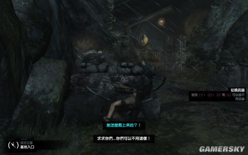 攀上岩壁以后接到同伴电话,之后经由绳索到下一站,落下的时候会被敌人发现,
