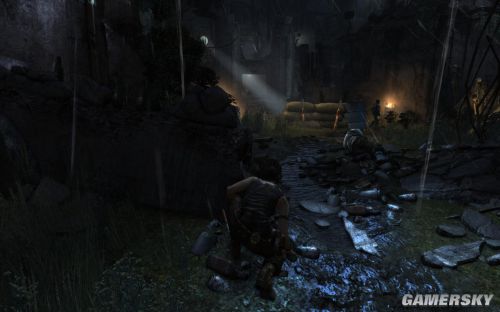 休息之后继续前行会看到敌人营地.在这里建议不要触发战斗,因为敌人有很猛的机枪.