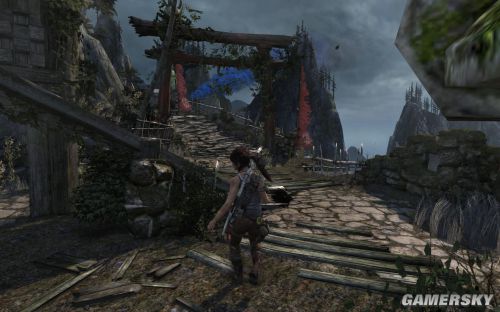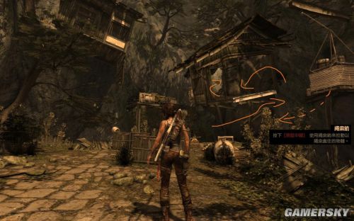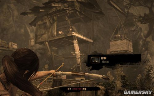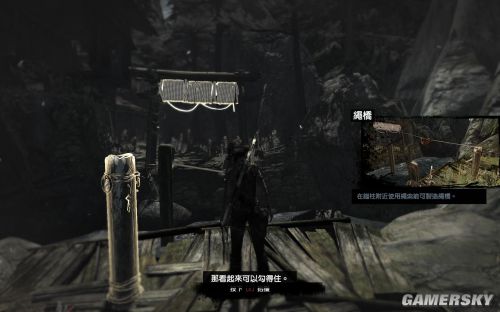 到达掩体后会见到绳索,弓箭的新功能开启,可以在用弓时按鼠标中键发射绳索拉动有绳索圈的东西.