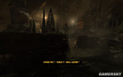 来到矿坑以后有营火,整顿后前进来到牢房。看完吃人的恐怖画面以后我们可以直接走下去,