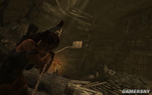 掉下来以后路前行即可,拿到箭矢以后用火箭点燃天然气炸开前路。
